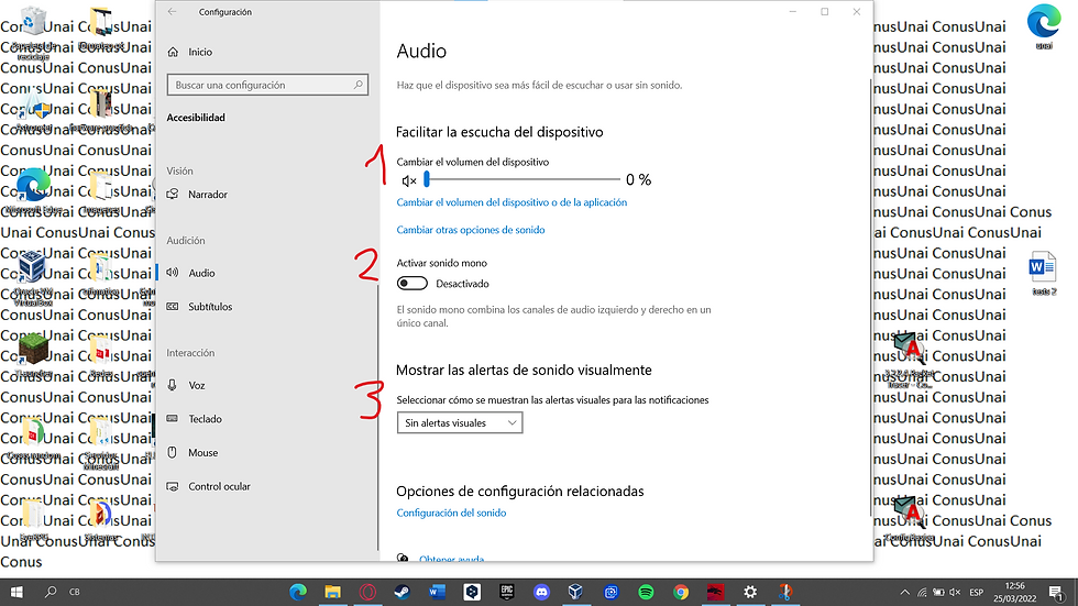 Com podem veure hi han diferents opcions, la 1 es cambiar el volumen del pc, la 2 opcio es per activar el so mono que significa que combina el so del costat dret i esquerra en un unic so, la 3 opcio es per activar o desactivar les alertas visuals