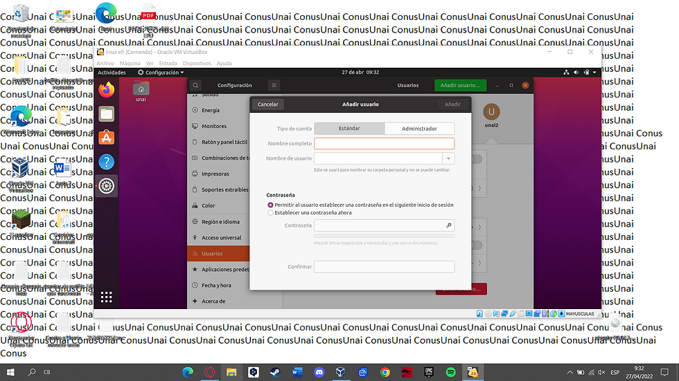 Per crear un usuari sense paraula de pas hem de posar un nom, el nombre de usuari