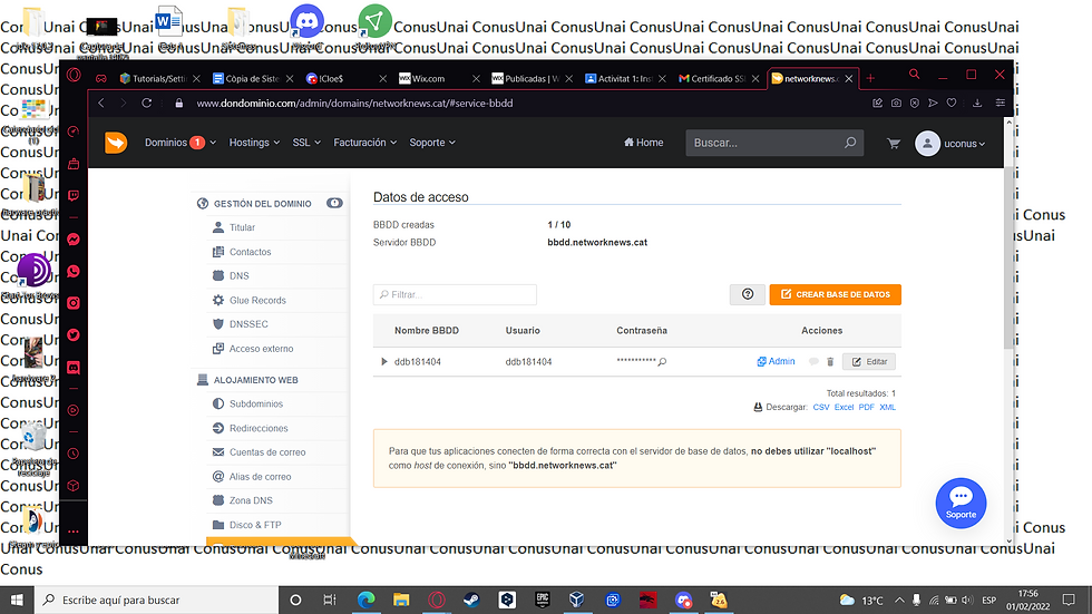 Obrim dondominio i creem una compte i anem a la administracio del noestre domini i anem a bases de dades