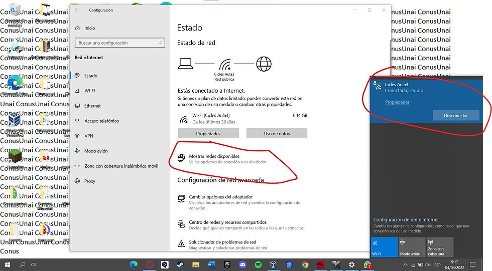 si fem clic en mostrar xarxes podrem veure les xarxes disponibles per conectartnos